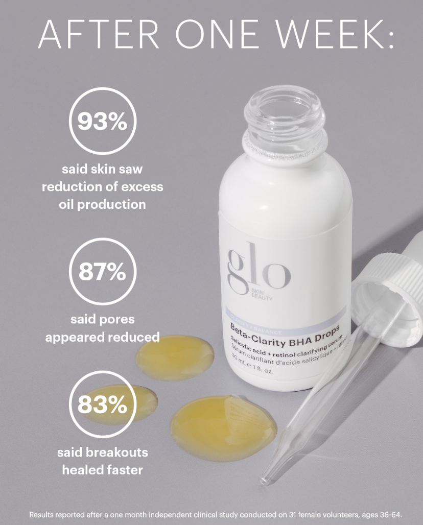 Targeting uneven pigmentation and stimulating cell turnover via gentle exfoliation, Beta-Clarity BHA Drops are loaded with clarifying alpha and beta hydroxy acids to eliminate impurities and rebalance excess oil. Strengthening and refining skin’s surface, the appearance of fine lines and pores is reduced, while radiance-promoting retinol smooths and revitalizes.