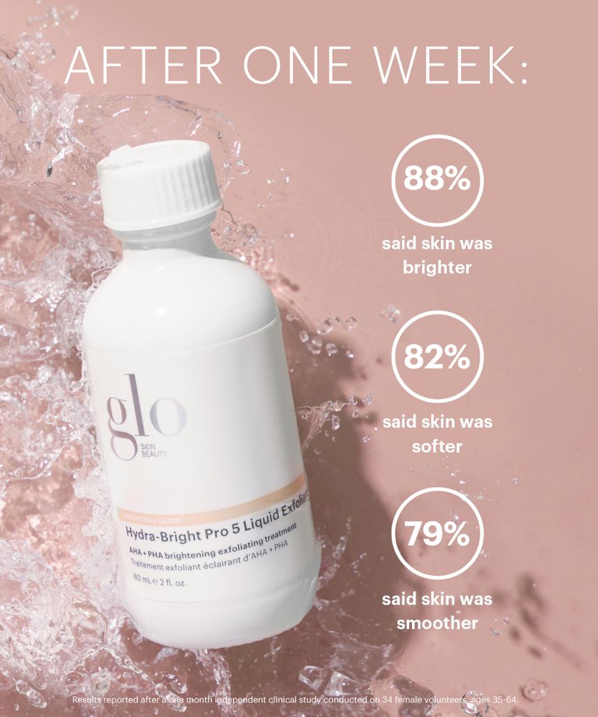 A gentle pro-strength exfoliating treatment, Hydra-Bright Pro 5 Liquid Exfoliant smooths, tones, and brightens skin with a powerhouse mix of five alpha hydroxy acids and poly hydroxy acid at a 10% concentration. A best seller for good reason, this one-step, PHA + AHA exfoliant not only clarifies, conditions, and refines, but also boosts the efficacy of your serums and moisturizers, for radiant, perfectly primed complexions.